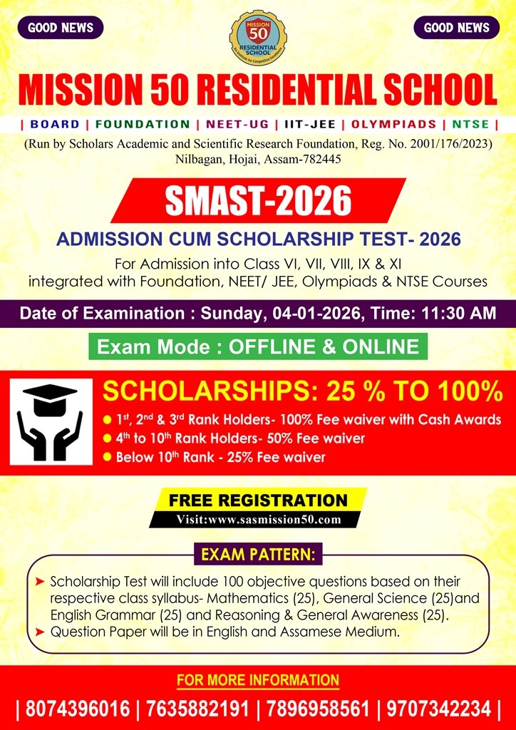 Mission 50 Residential School, Hojai offers scholarships and financial assistance to
